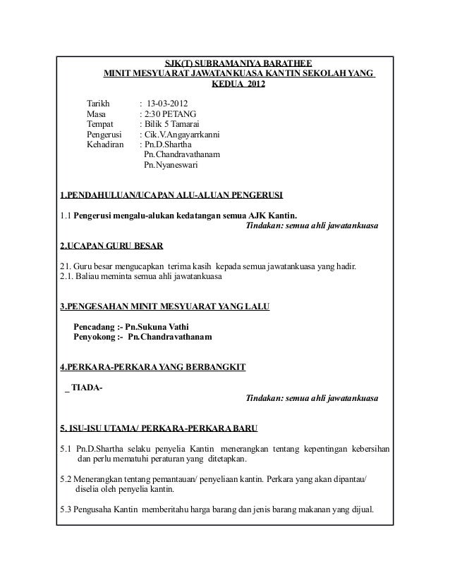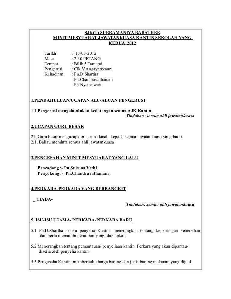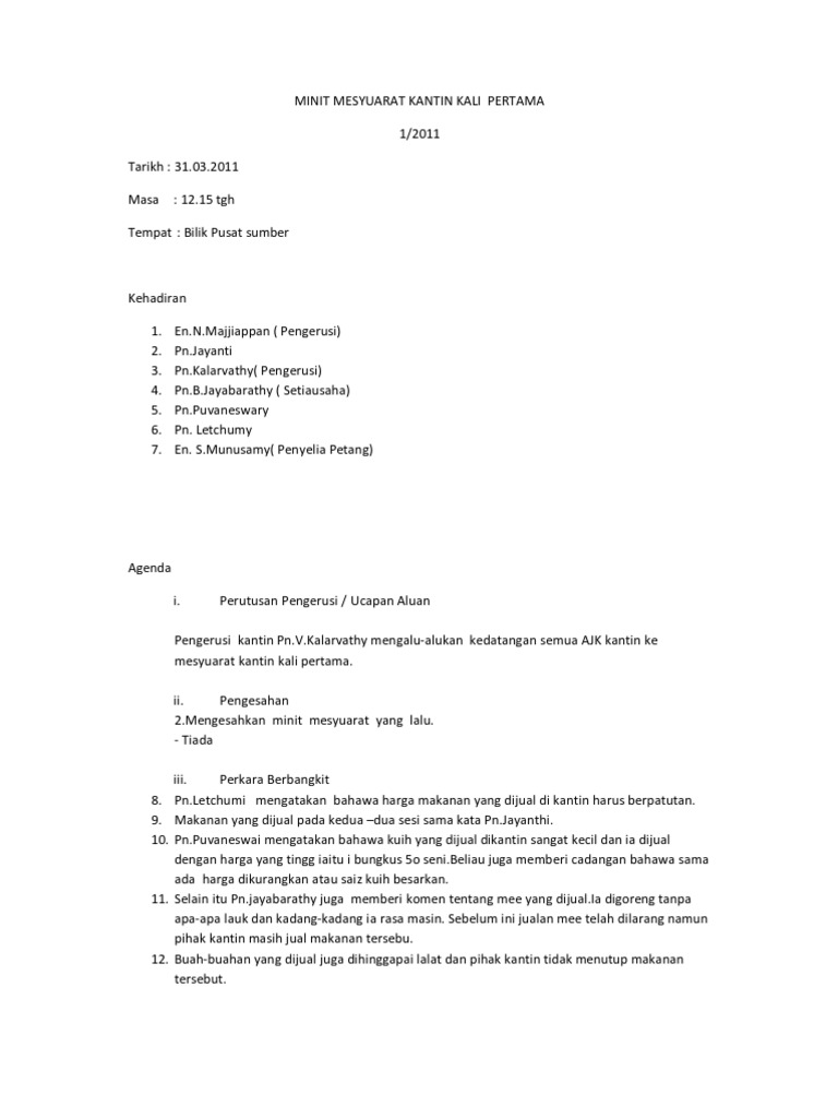 Minit Mesyuarat Kantin Kali Pertama Pdf