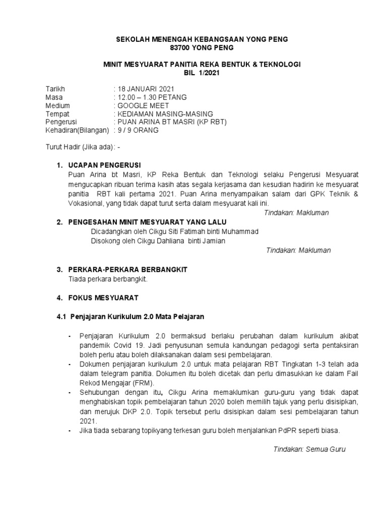 Minit Mesyuarat Pentadbiran Kali 3 2021 Membalik Buku Halaman 1 8 Anyflip